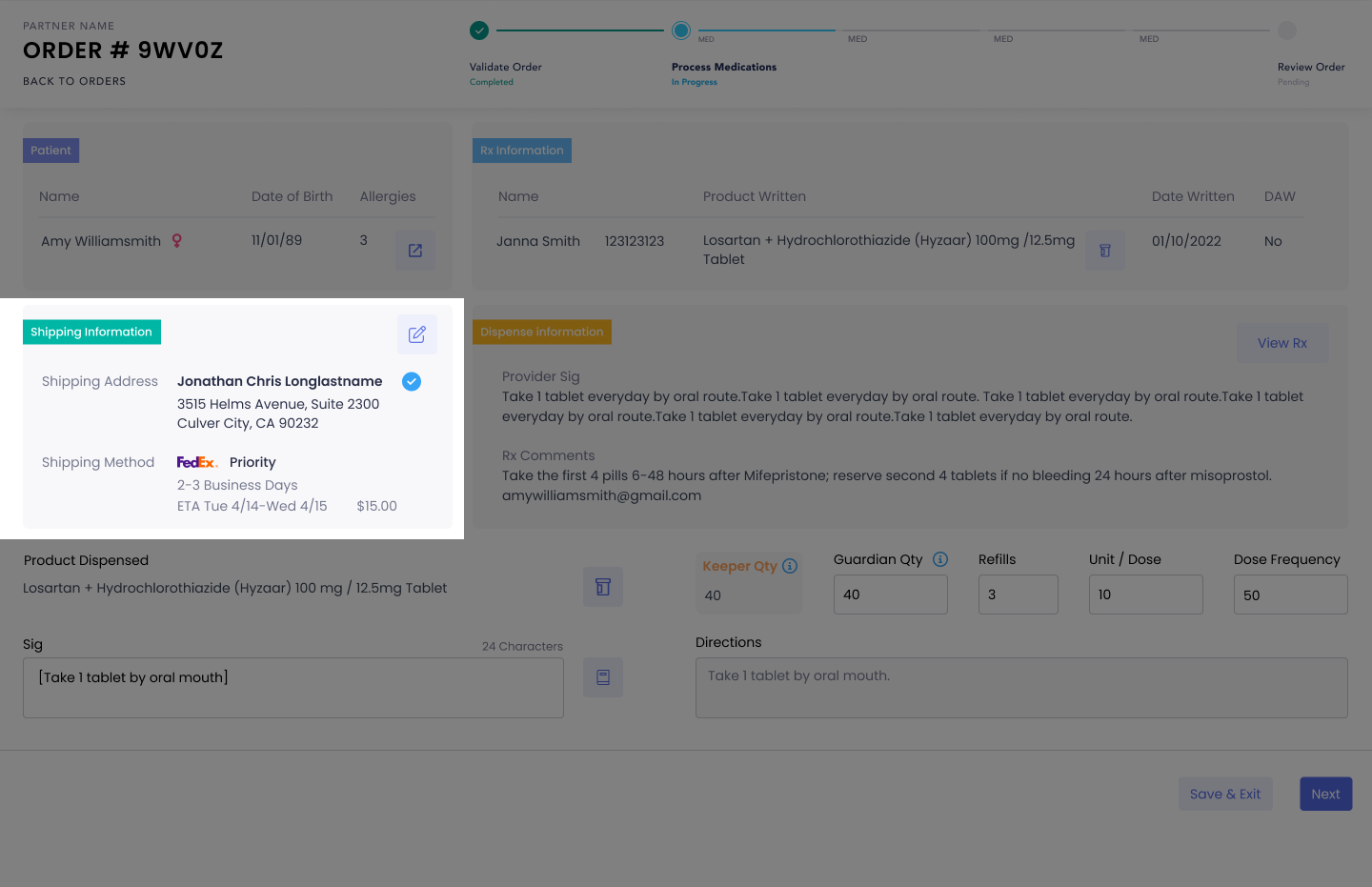 The user had to look at the processing page under “Rx Comments” to make the address update in the order shipping tab page. They toggled between the two pages to make sure the information was updated correctly.
